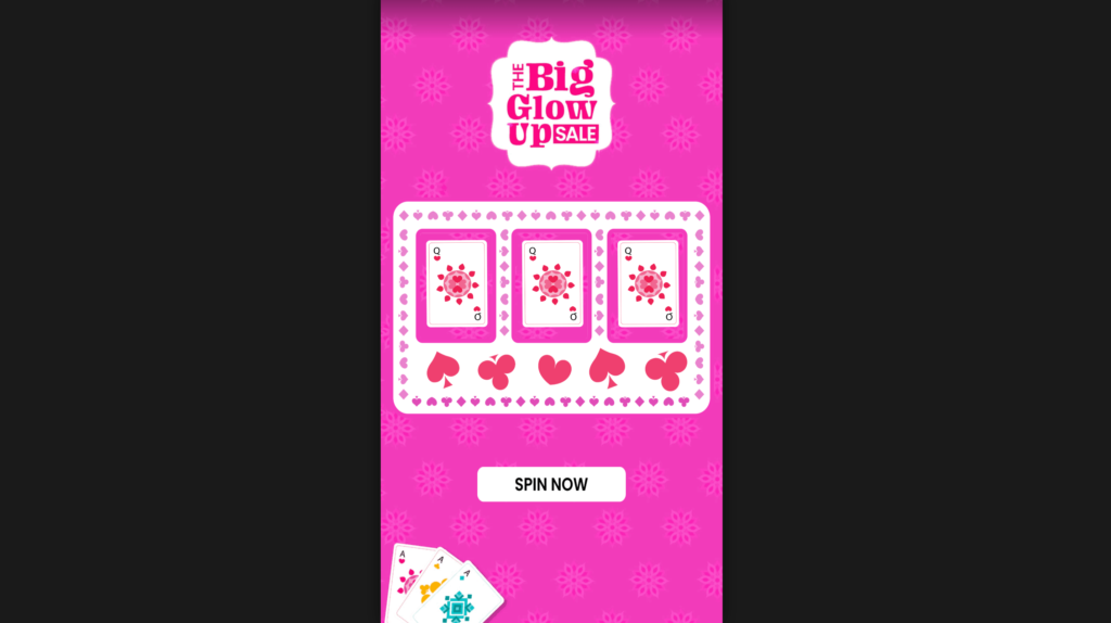 A premium skincare brand created a unique “Big Glow Up Sale” campaign combining slot machine mechanics with card game aesthetics to drive conversions during their major sales season.
