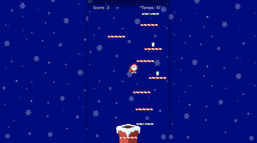 - The Game Mechanic: The Doodle Jump style game (Image 2) sees a branded character (like Santa) perpetually jumping upward, using candy cane platforms to climb higher while avoiding pitfalls, with the goal of achieving a high score.
