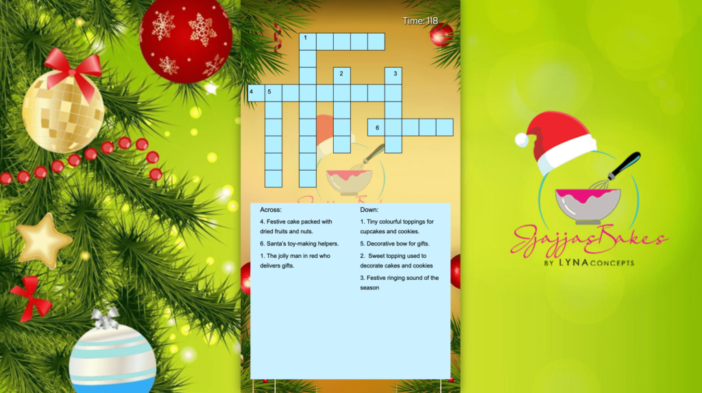 - The Game Mechanic: The CrossWord game features a traditional grid, where clues are replaced with descriptions of seasonal products or ingredients. (Based on Image 1, clues included “Festive cake packed with dried fruits and nuts” – Christmas Cake).